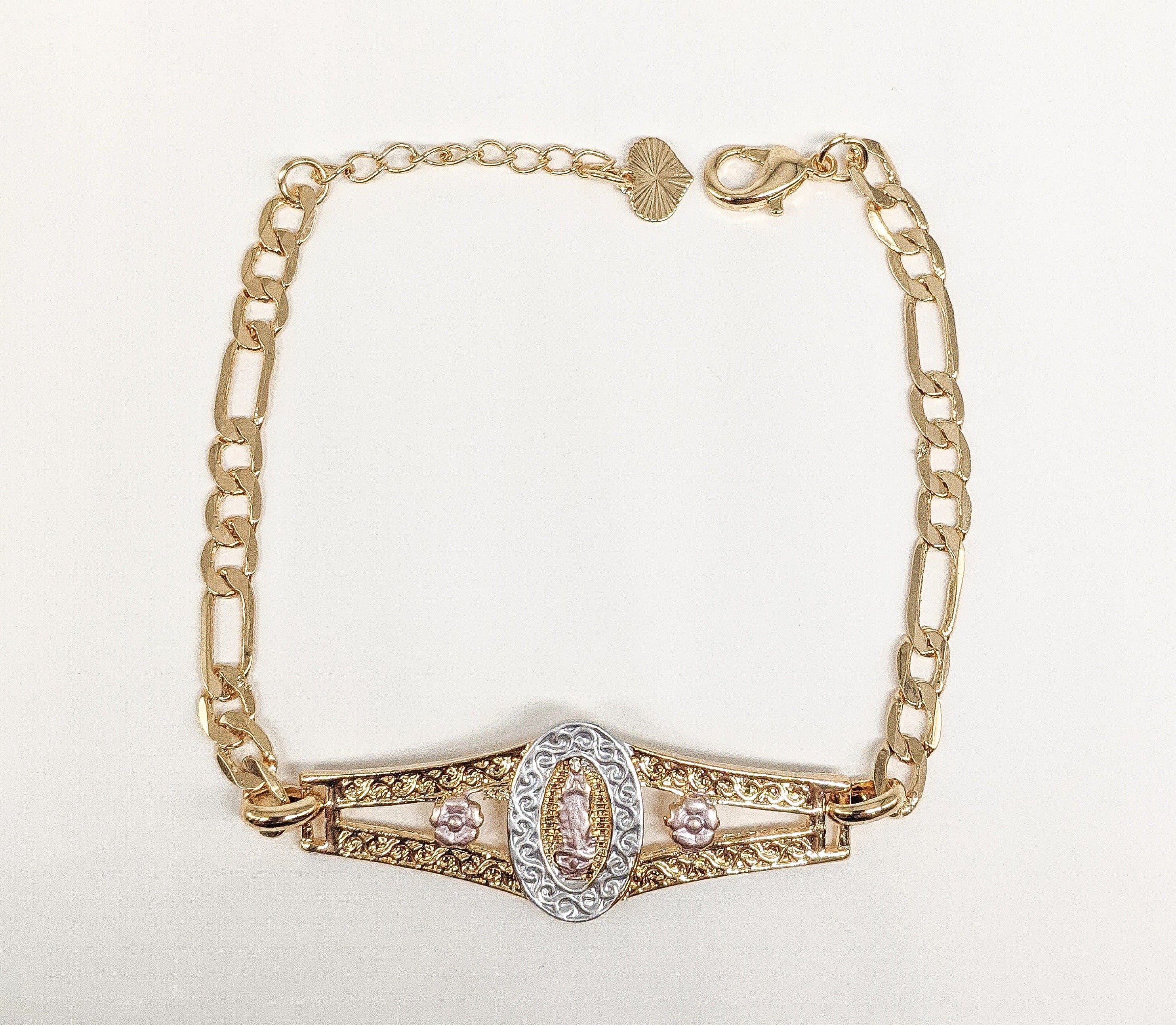 Plated Tri-Color Virgin Mary Adjustable Bracelet*