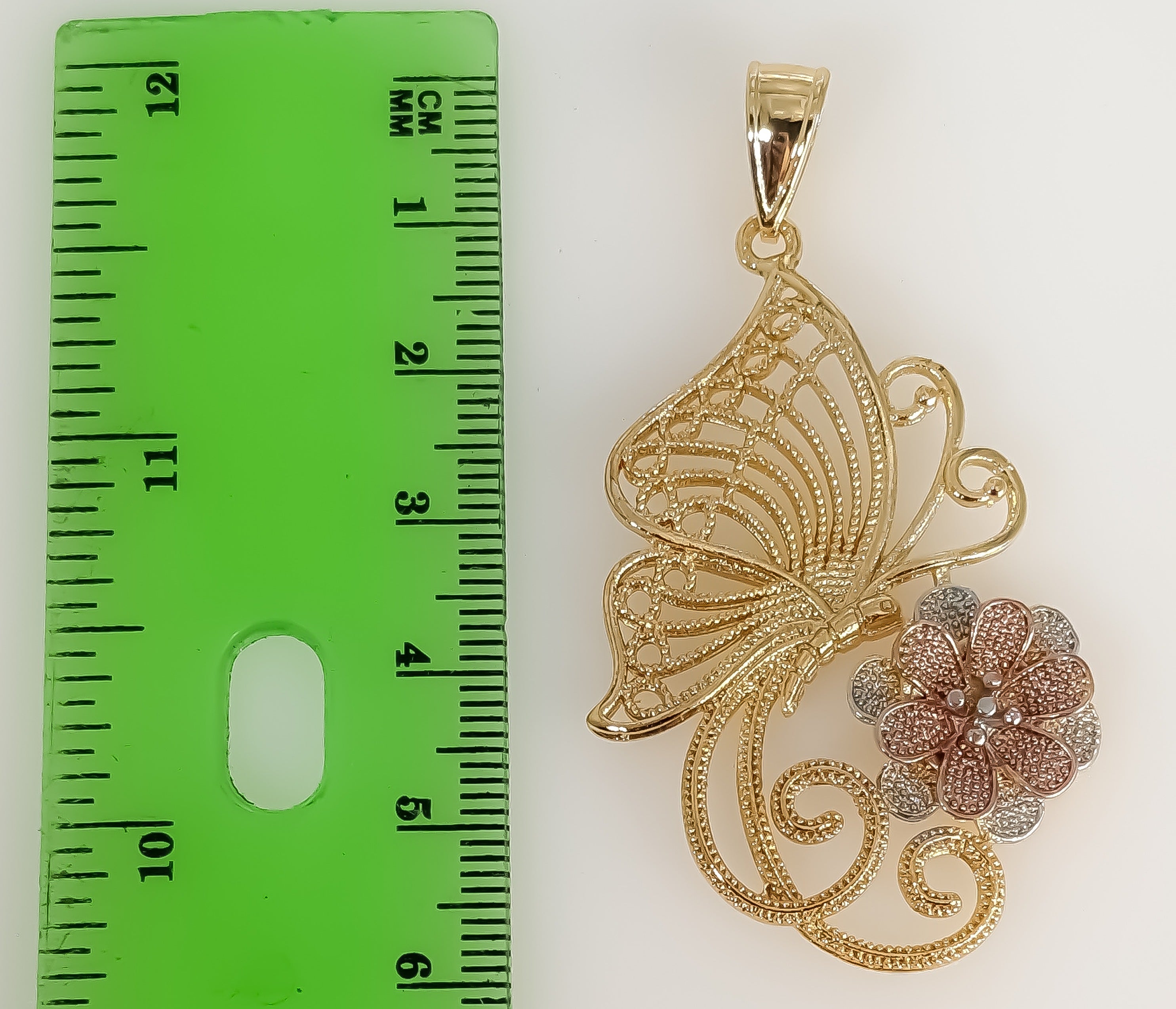 Plated Tri-Color Large Butterfly Pendant