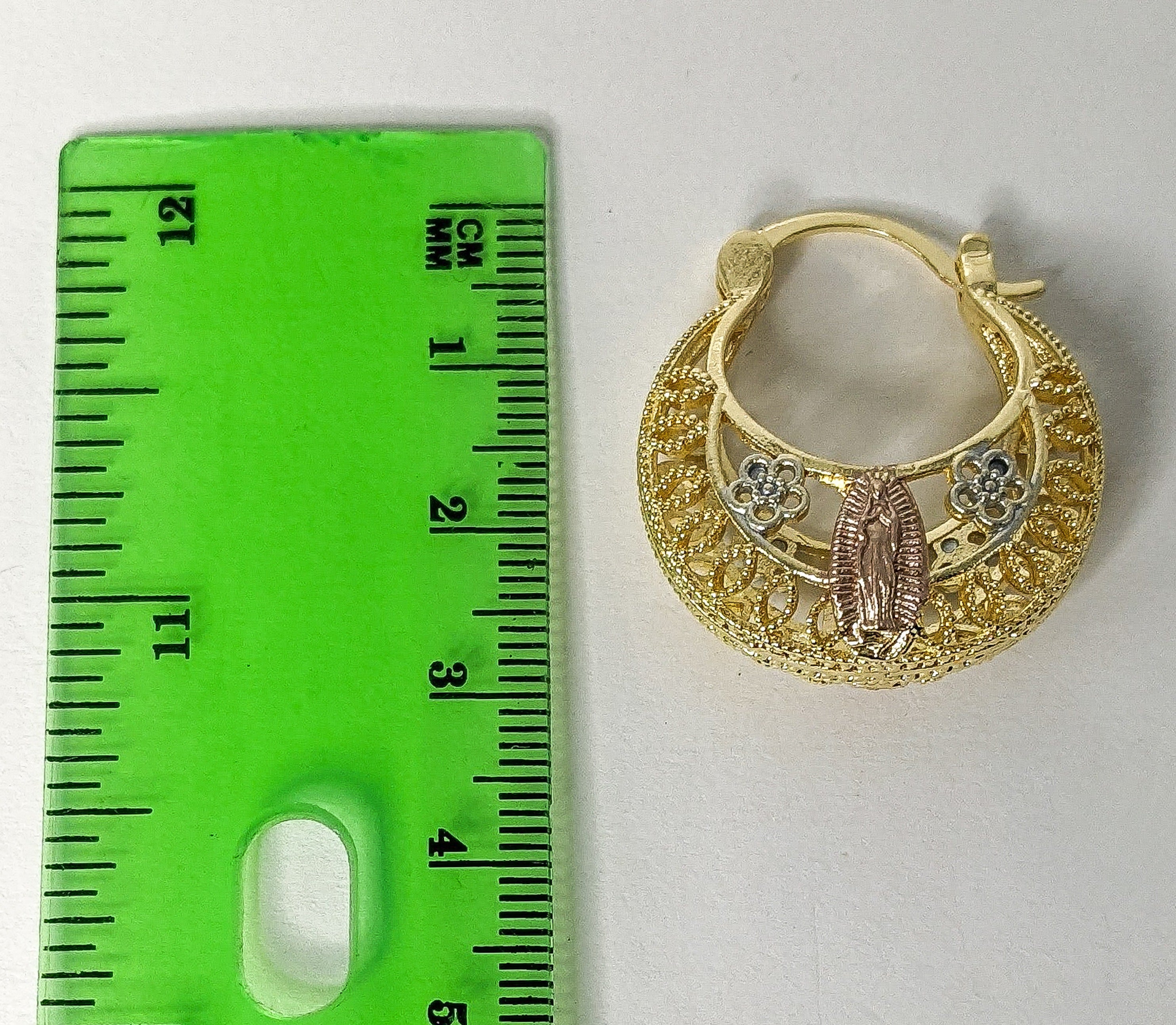 Plated Tri-Gold Virgin Mary Basket Earring