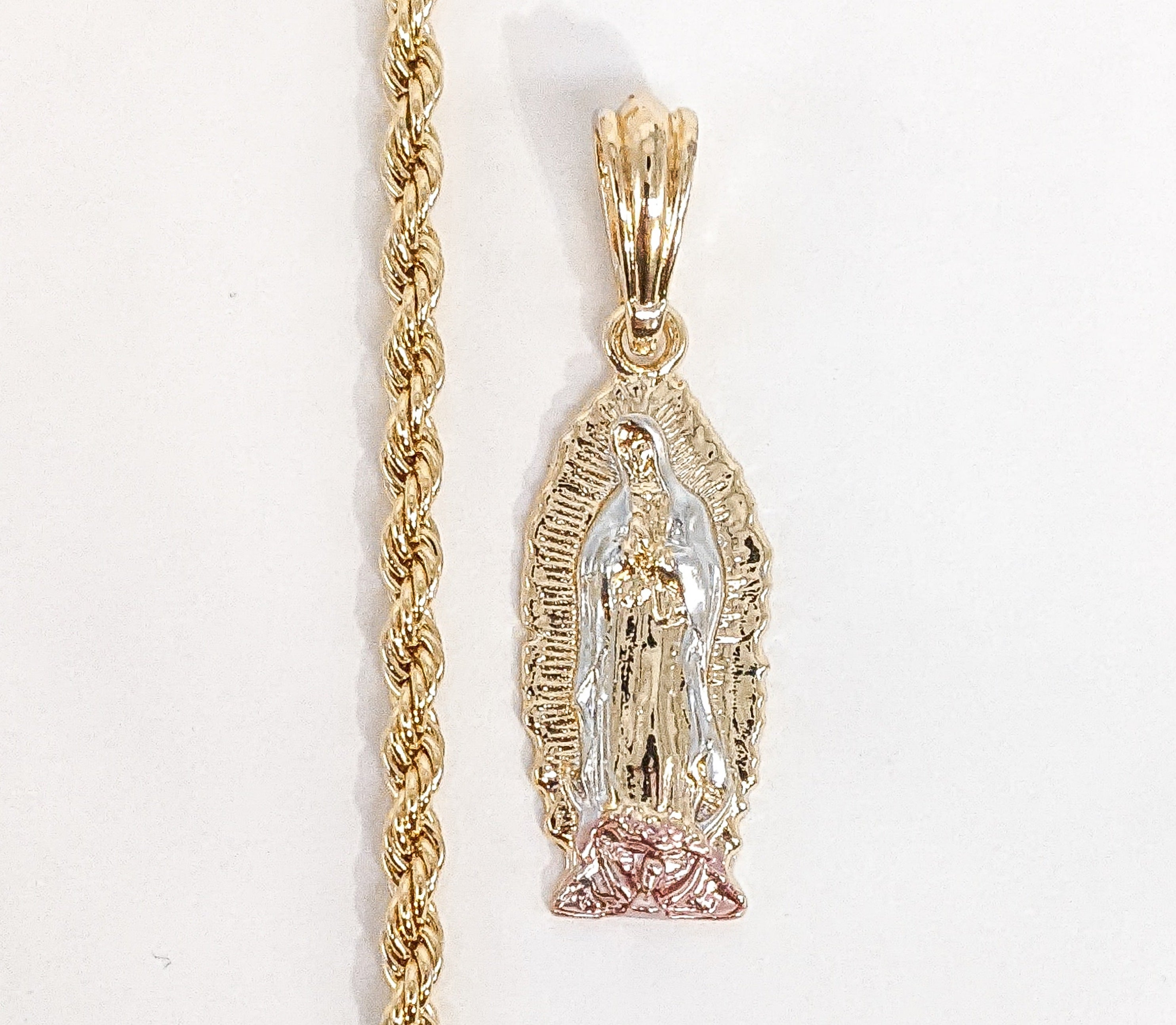 - Our Lady of Guadalupe Necklace Contains Pendant (Tri-Color) and Chain (Golden)