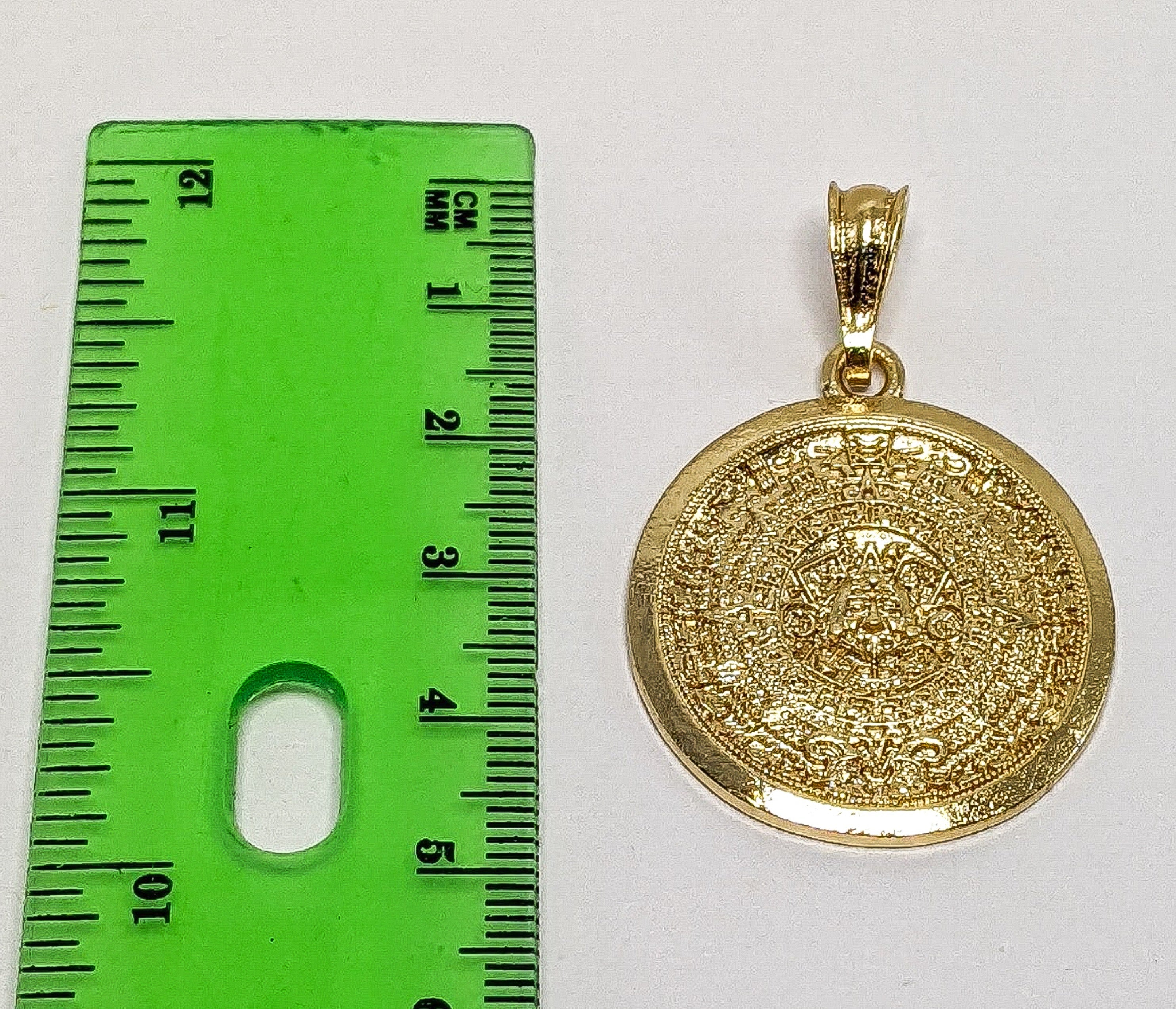 Plated Aztec Calendar 3mm Figaro Chain Necklace