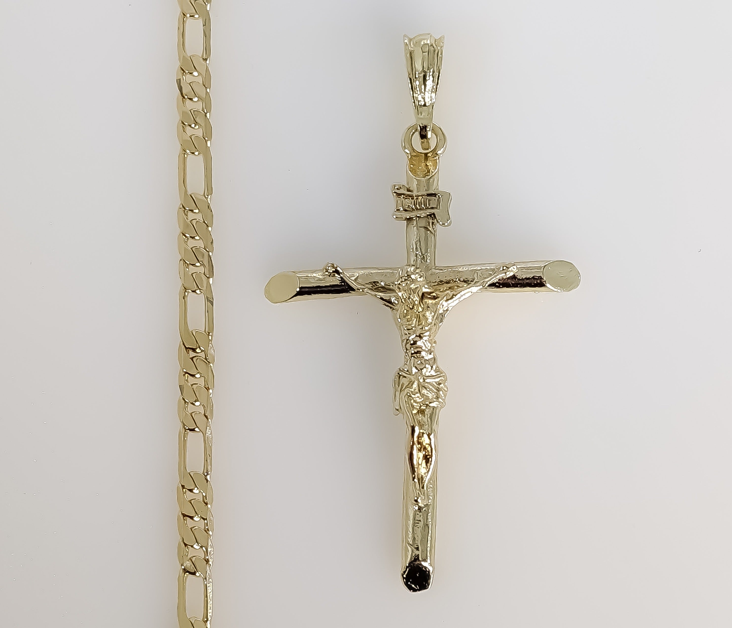 Plated Medium Cross 4mm Figaro Chain Necklace