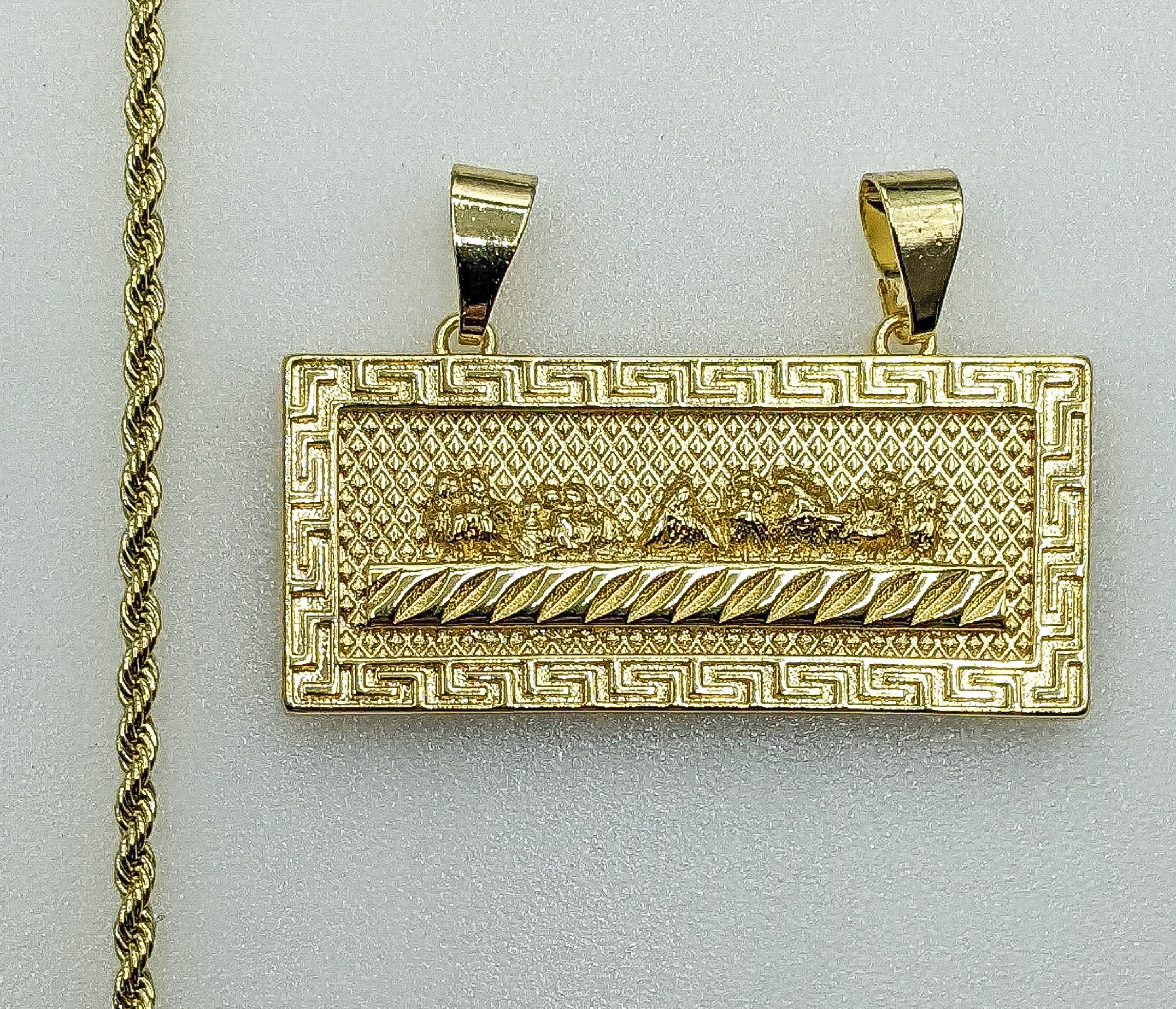 Plated The Last Supper Bar Pendant 2mm Rope/Braided Chain Necklace