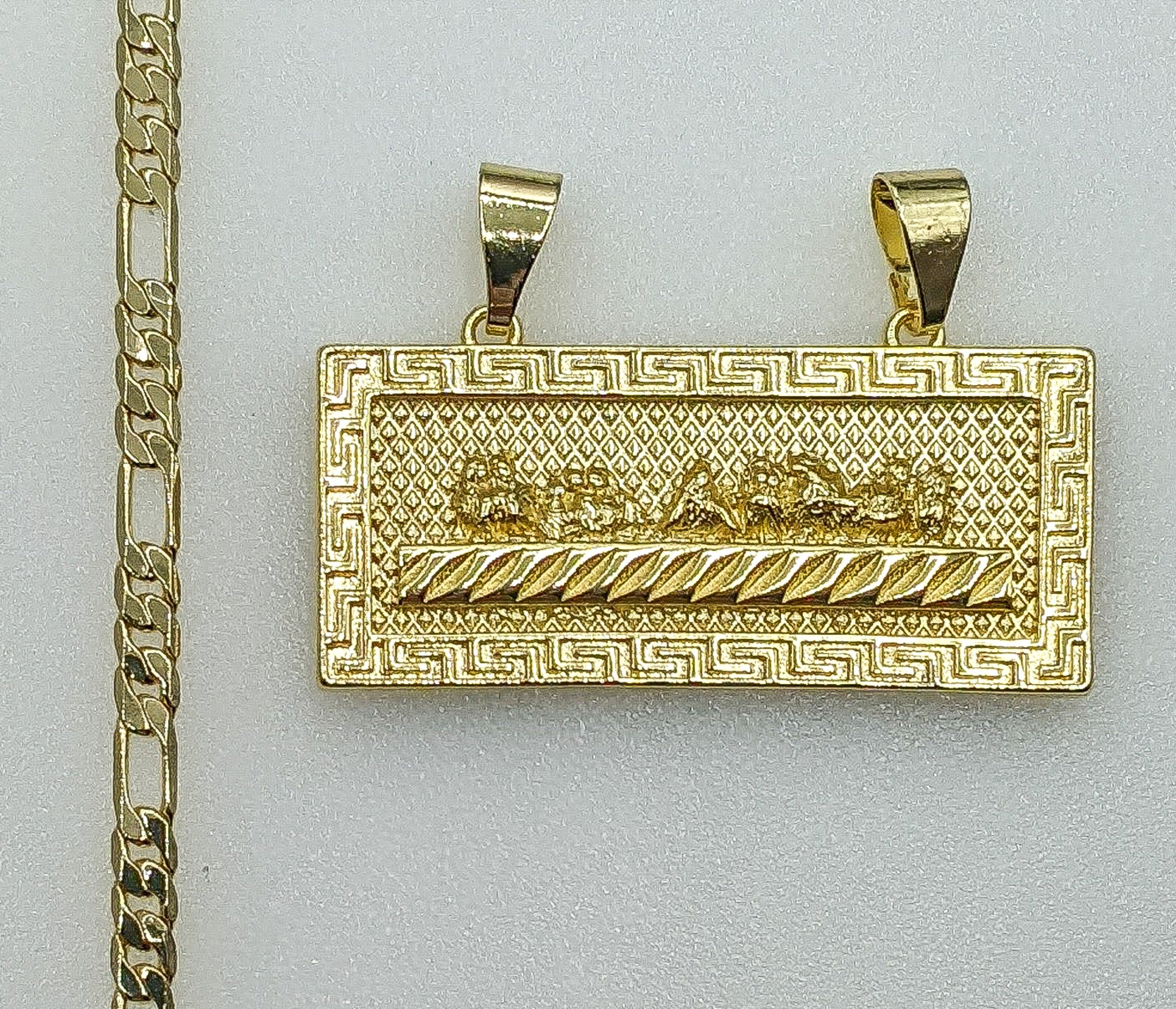 Plated The Last Supper Bar Pendant 4mm Figaro Chain Necklace