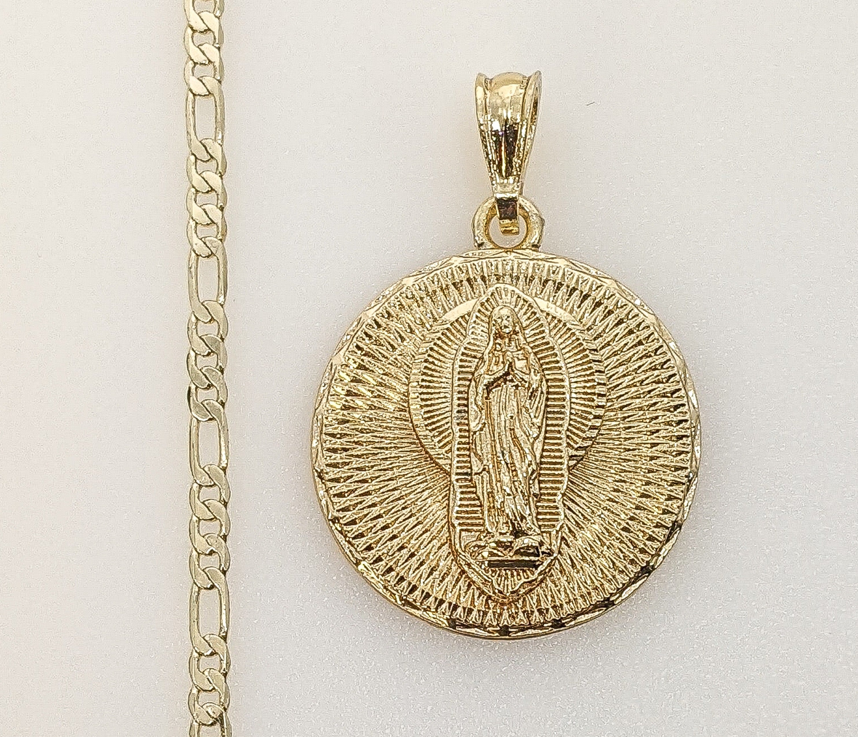 Plated Virgin Mary 3mm Figaro Chain Necklace