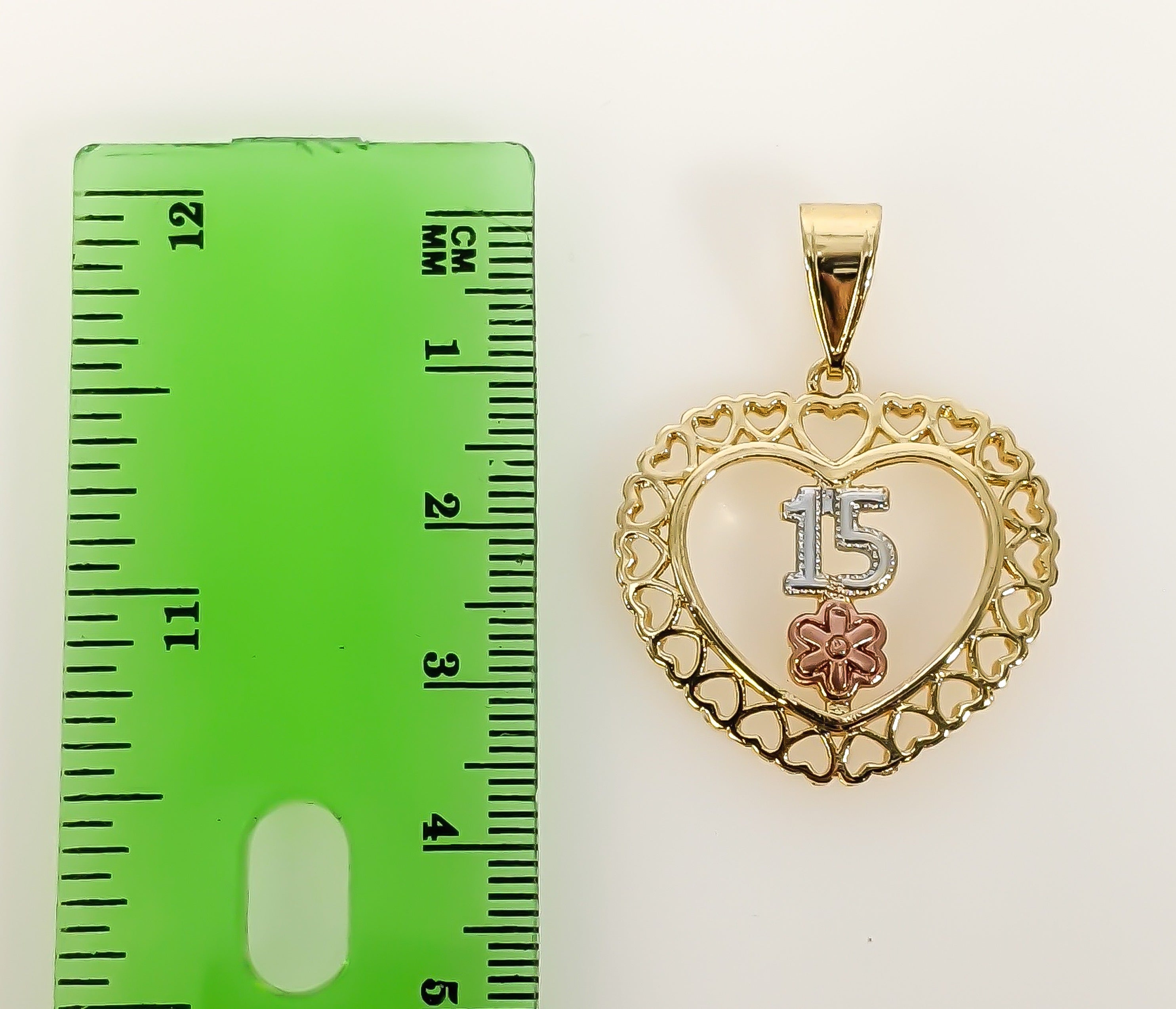 Plated Tri-Color Heart "My 15" Quince Pendant