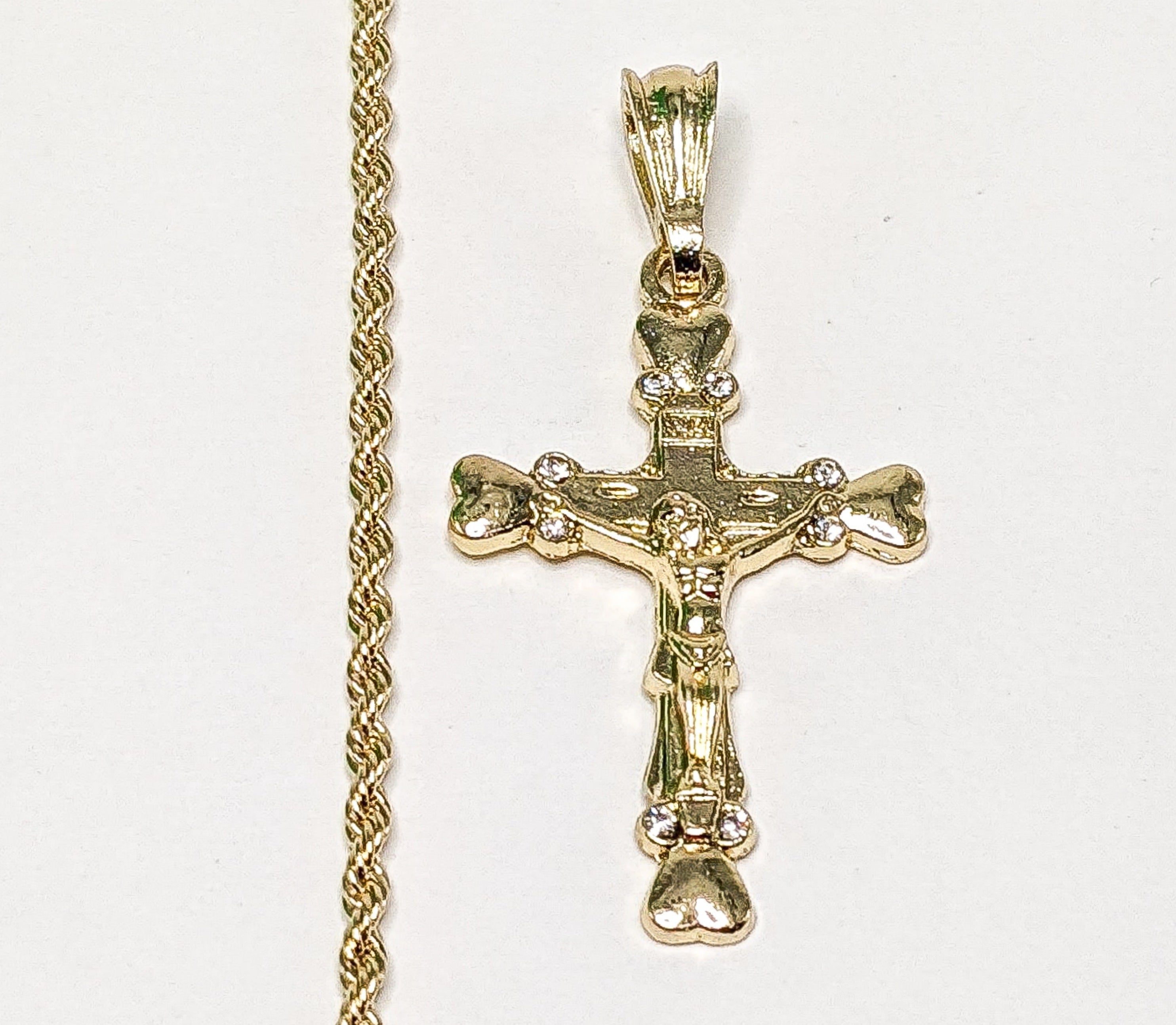 Plated Cross 2mm Rope/Braided Chain Necklace