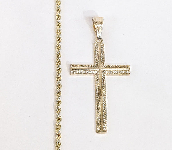 Plated Cross 3mm Rope/Braided Chain Necklace