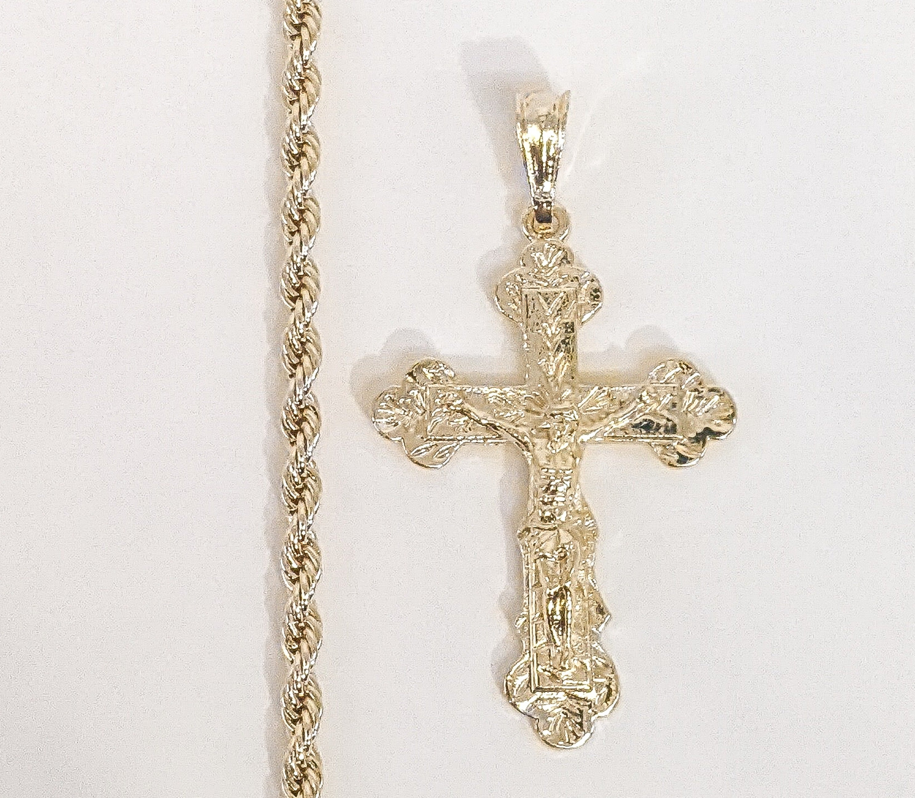 Plated Cross Pendant and Rope/Braided Chain Set