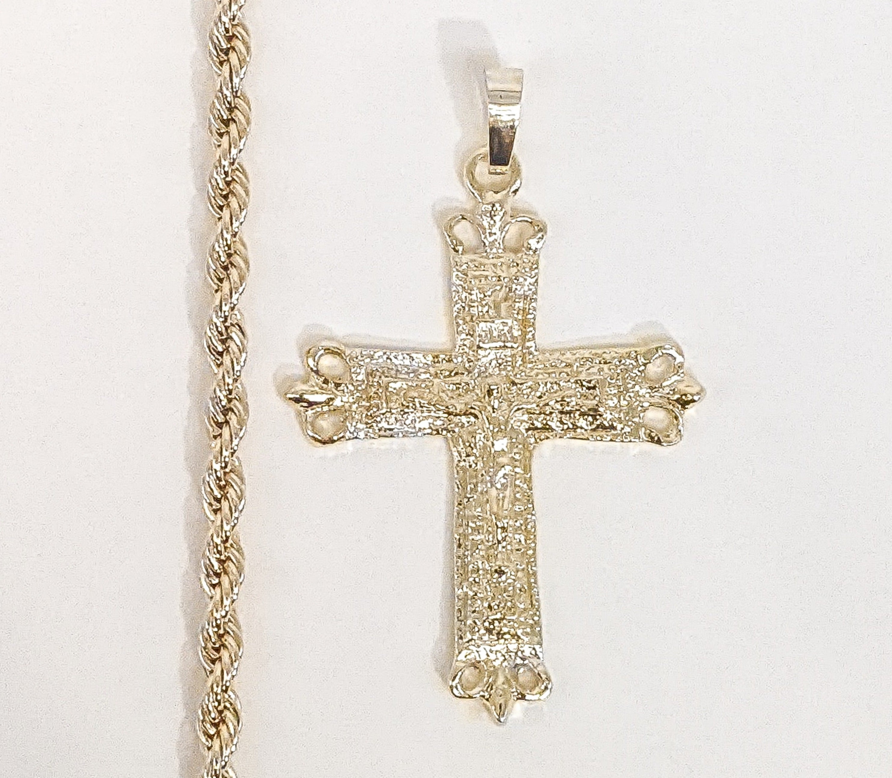 Plated Cross 4mm Rope/Braided Chain Necklace