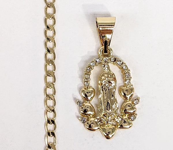 Plated Dainty Virgin Mary 3mm Cuban Chain Necklace