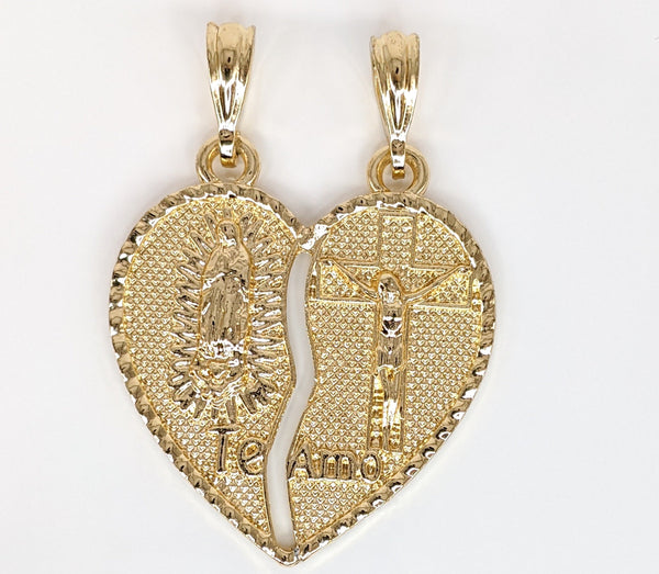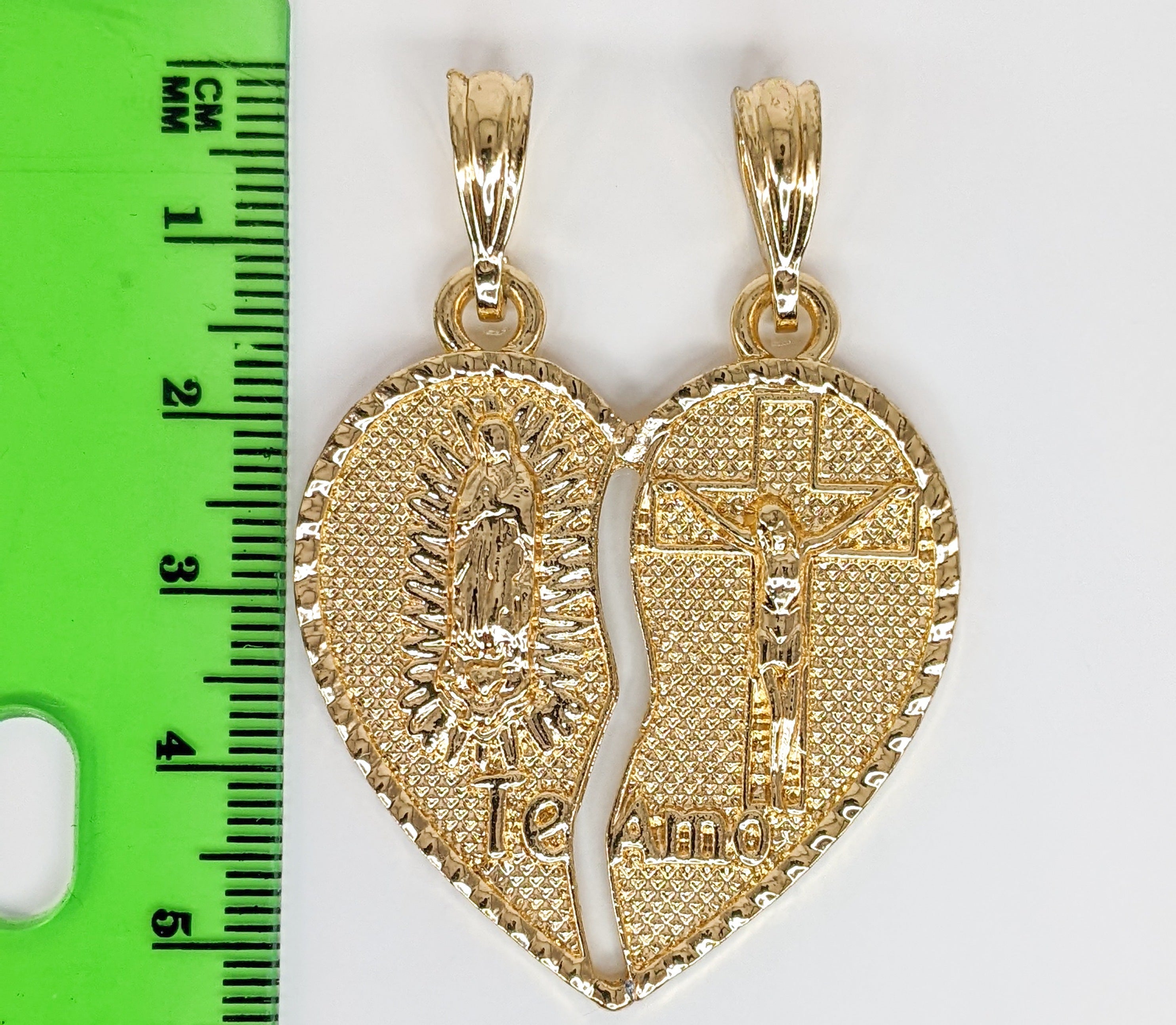 Plated Virgin Mary and Cross Break-A-Part Heart Pendant