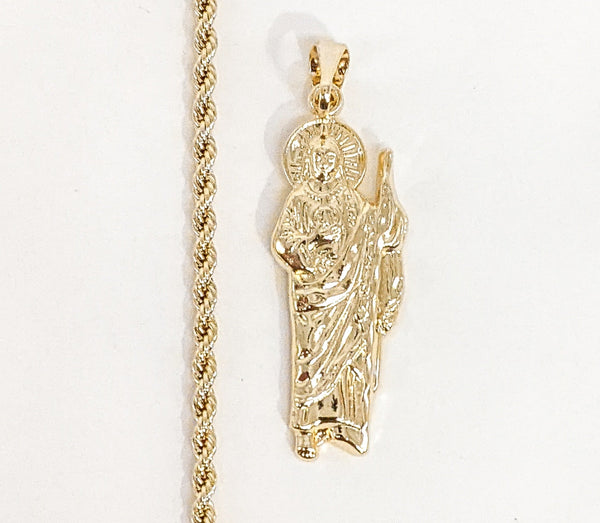 Plated Saint Jude Rope/Braided 2mm Chain Necklace