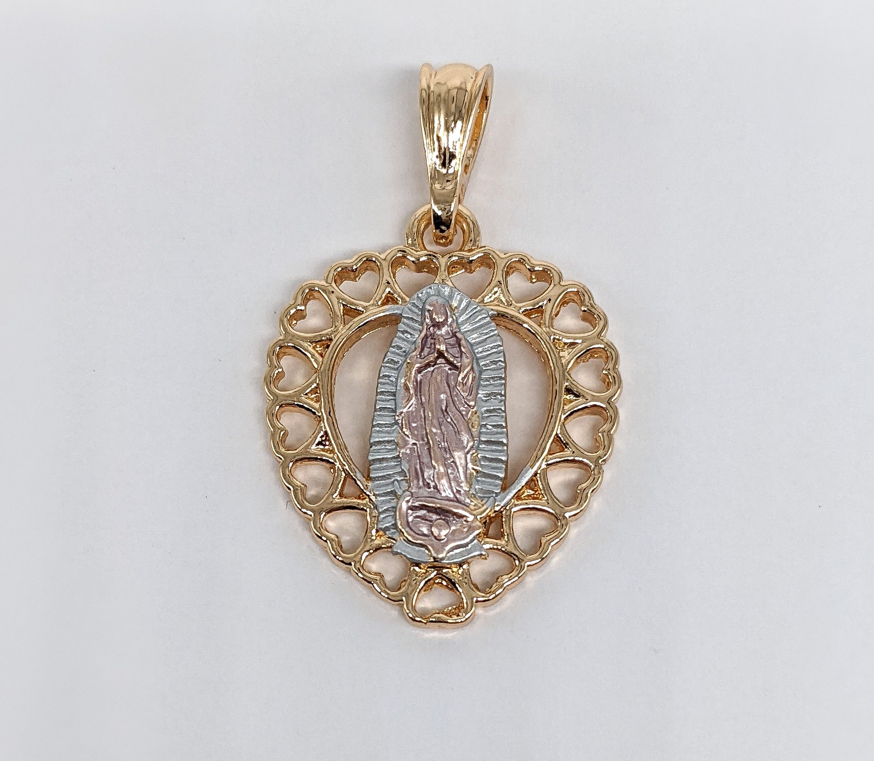 Plated Tri-Color Heart with Virgin Mary Pendant