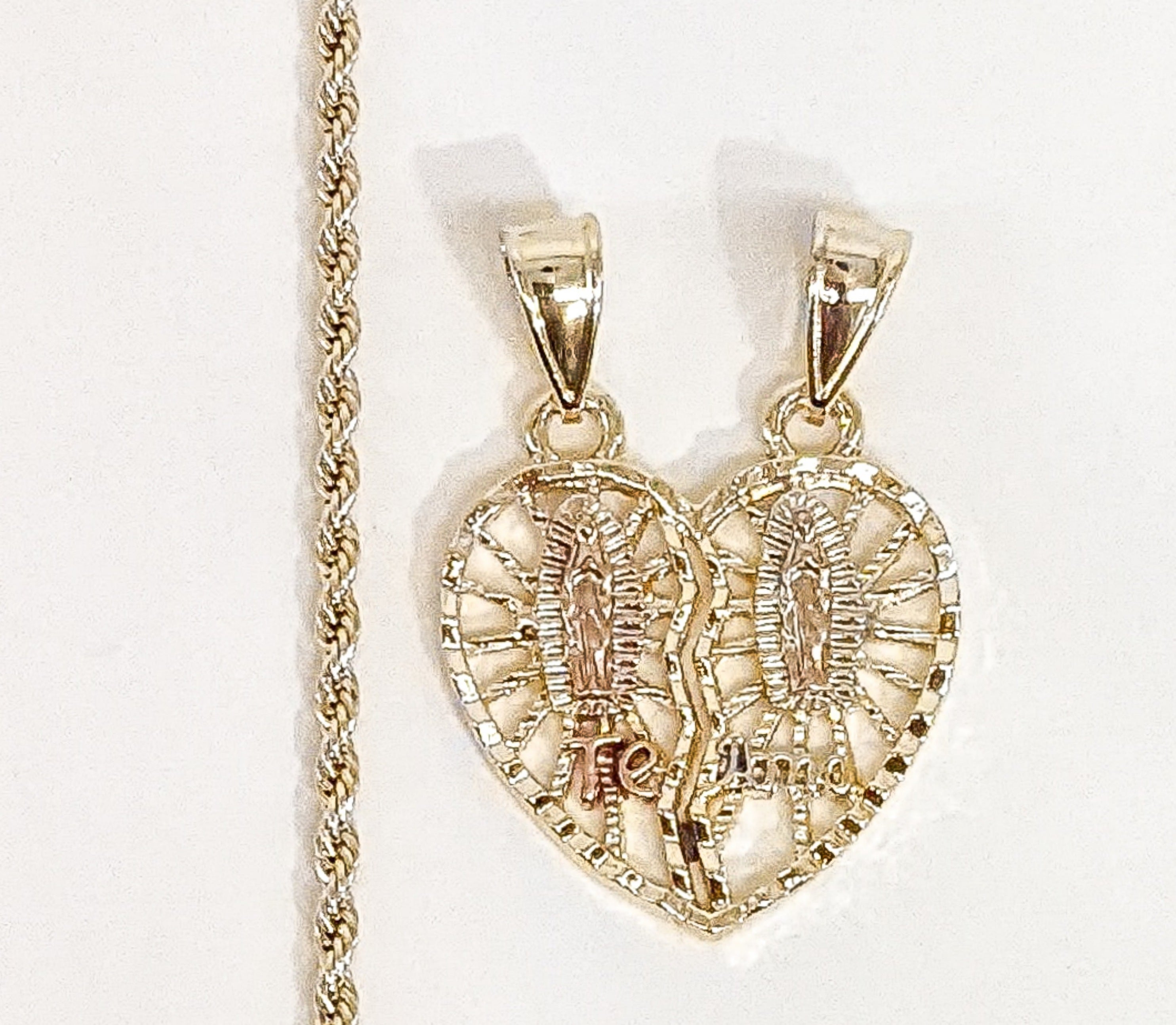 - Our Lady of Guadalupe Necklace Contains Pendant (Tri-Gold) and Chain (Golden)