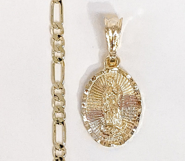 Plated Tri-Color Virgin Mary 4mm Figaro Chain Necklace