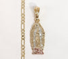 Plated Tri-Color Virgin Mary 4mm Figaro Chain Necklace