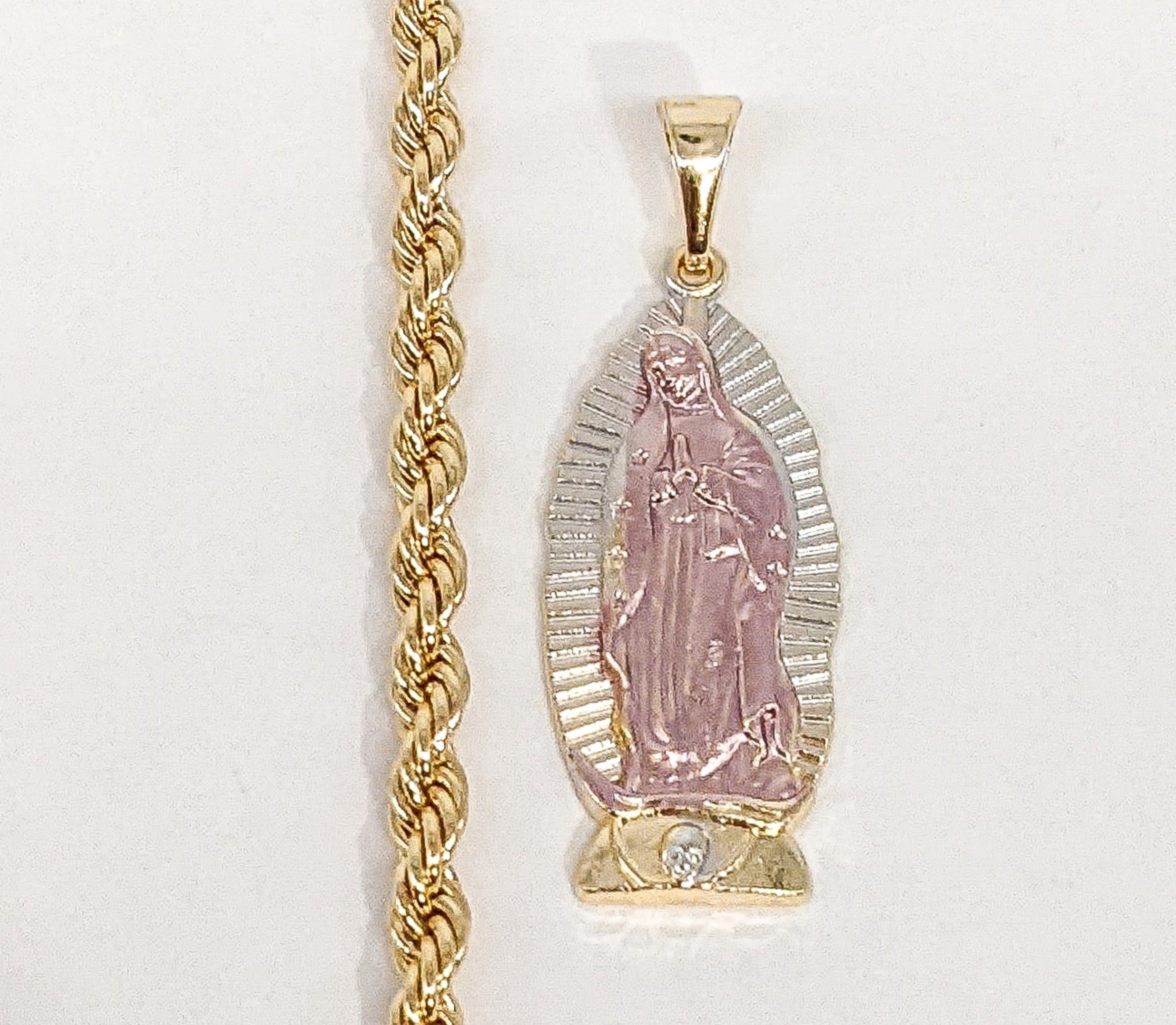 - Our Lady of Guadalupe Necklace Contains Pendant (Tri-Gold) and Chain (Golden)