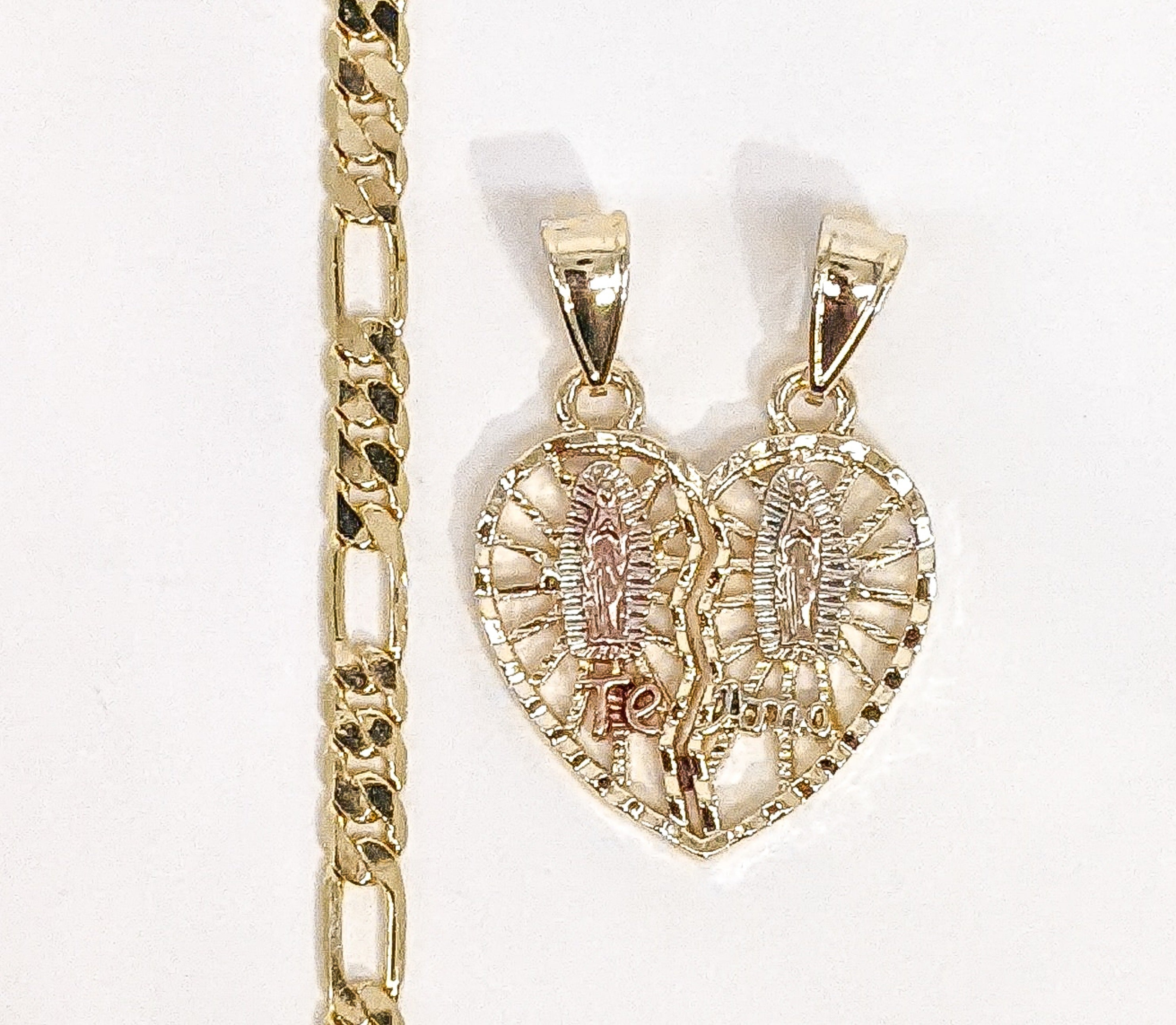 Plated Tri-Gold Virgin Mary 5mm Figaro Chain Necklace