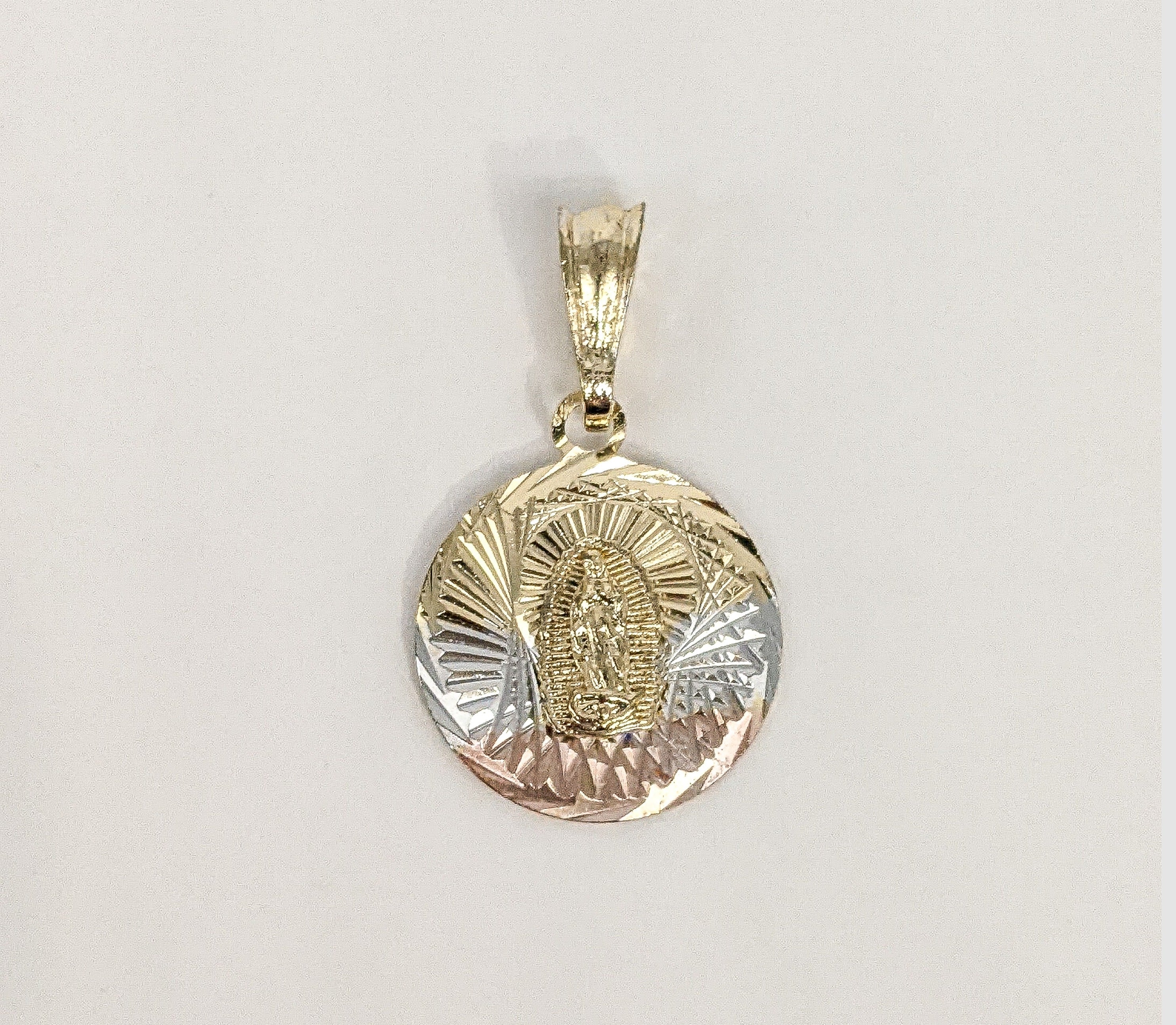 Plated Tri-Color Virgin Mary Medalla Pendant
