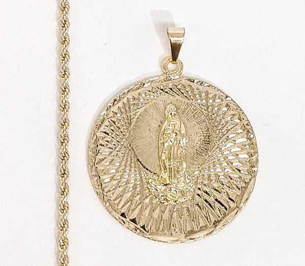 Plated Virgin Mary 2mm Rope/Braided Chain Necklace