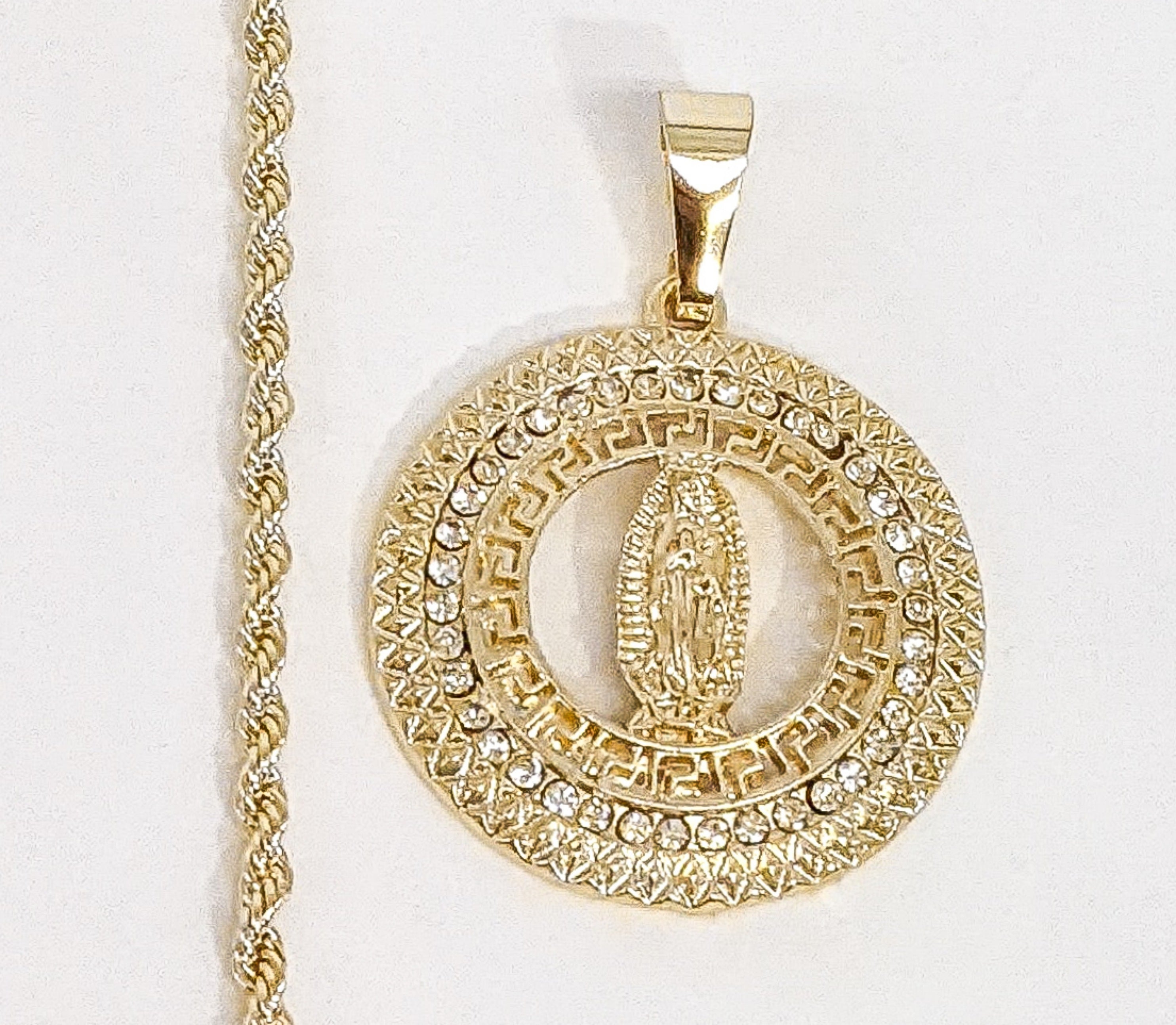 - Our Lady of Guadalupe Necklace Contains Pendant (Golden) and Chain (Golden)