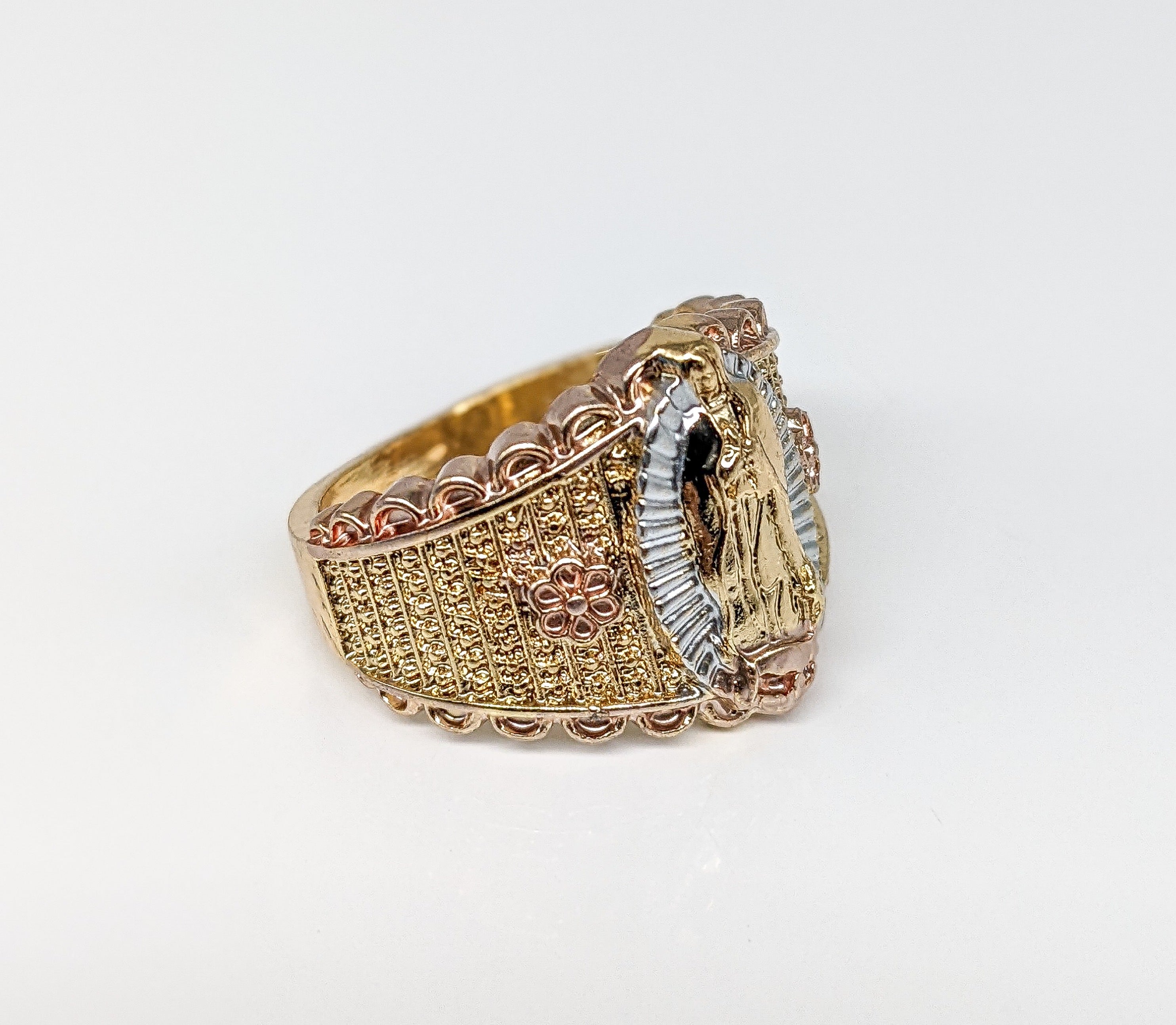 Plated Tri-Color Virgin of Guadalupe Ring