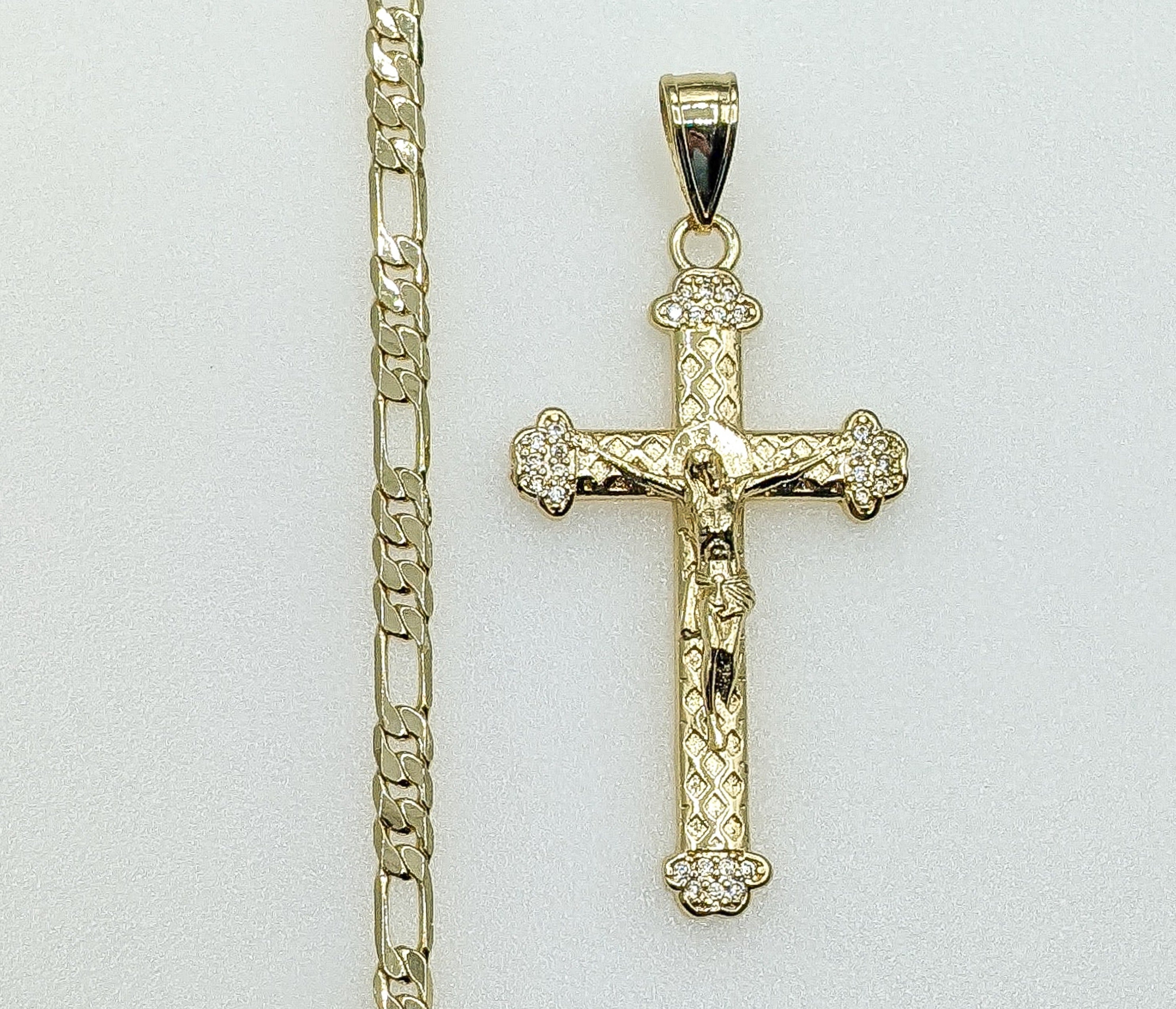 Plated Cross 4mm Figaro Chain Necklace