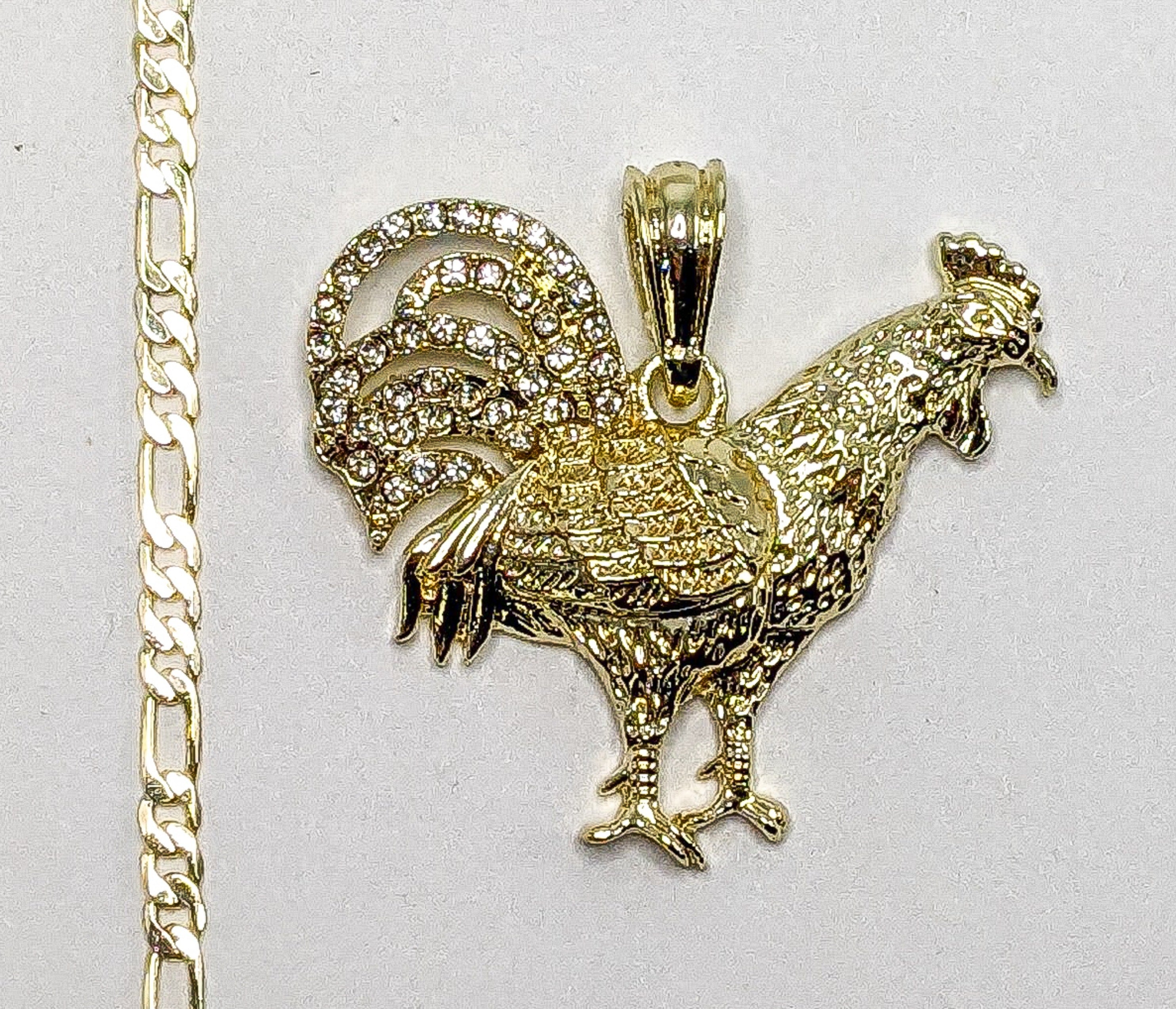 Plated Rooster 3mm Figaro Chain Necklace