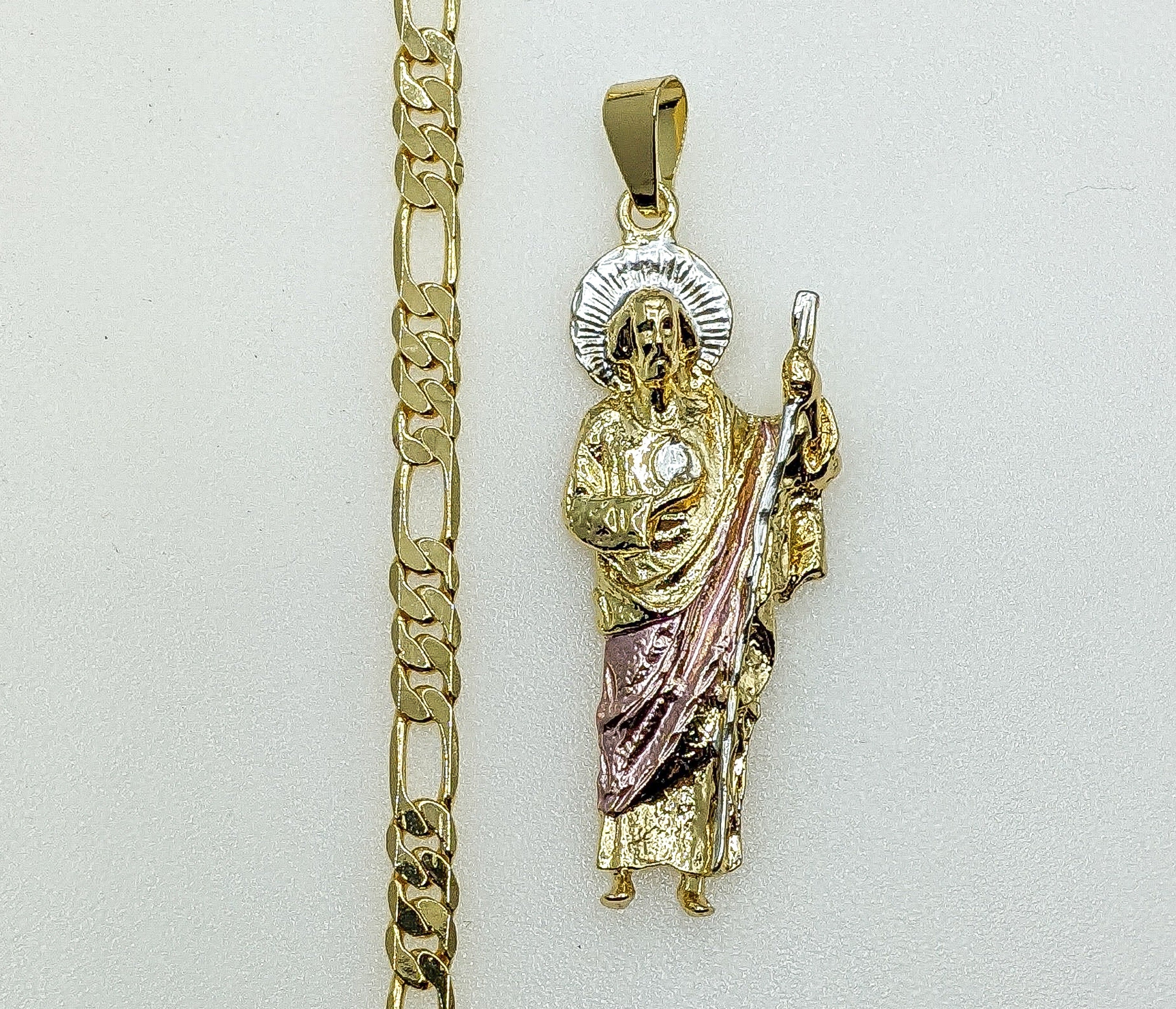 - St Jude Necklace Contains Pendant (Tri-Color) and Chain (18K Golden)