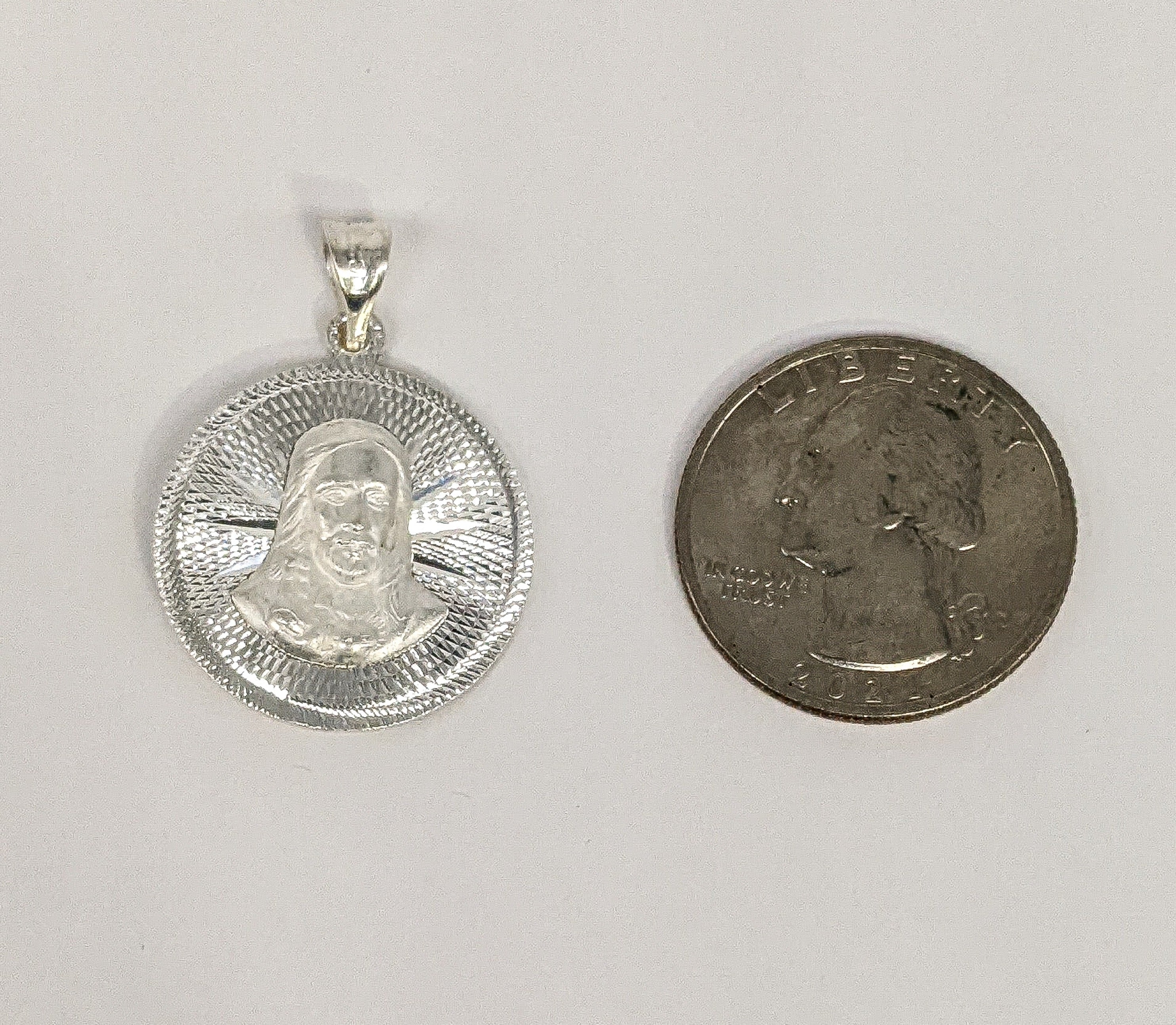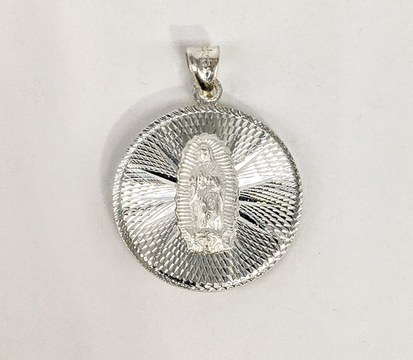 Silver 925 Double Sided Virgin Mary and Jesus Medallion Pendant